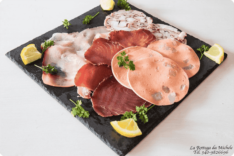 Degustazione dei Salumi di Pesce (sia di mare che di lago), ma